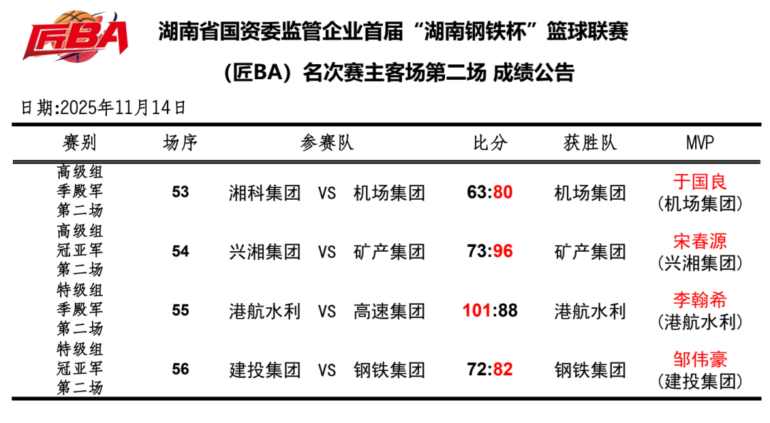 11月14日晚,湖南省國資委監(jiān)管企業(yè)首屆“湖南鋼鐵杯”籃球聯(lián)賽(“匠BA”)迎來巔峰對決。省國資委黨委副書記、副主任楊曉喻到特級組決賽現(xiàn)場觀賽,為參賽隊伍助威。最終,鋼鐵集團與礦產(chǎn)集團雙雙以決賽兩回合全勝的絕對優(yōu)勢,強勢問鼎特級組與高級組冠軍。