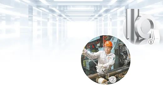 上圖中,①為湖南湘投金天鈦金屬股份有限公司的鈦帶卷產(chǎn)品;②為工作中的張普全。