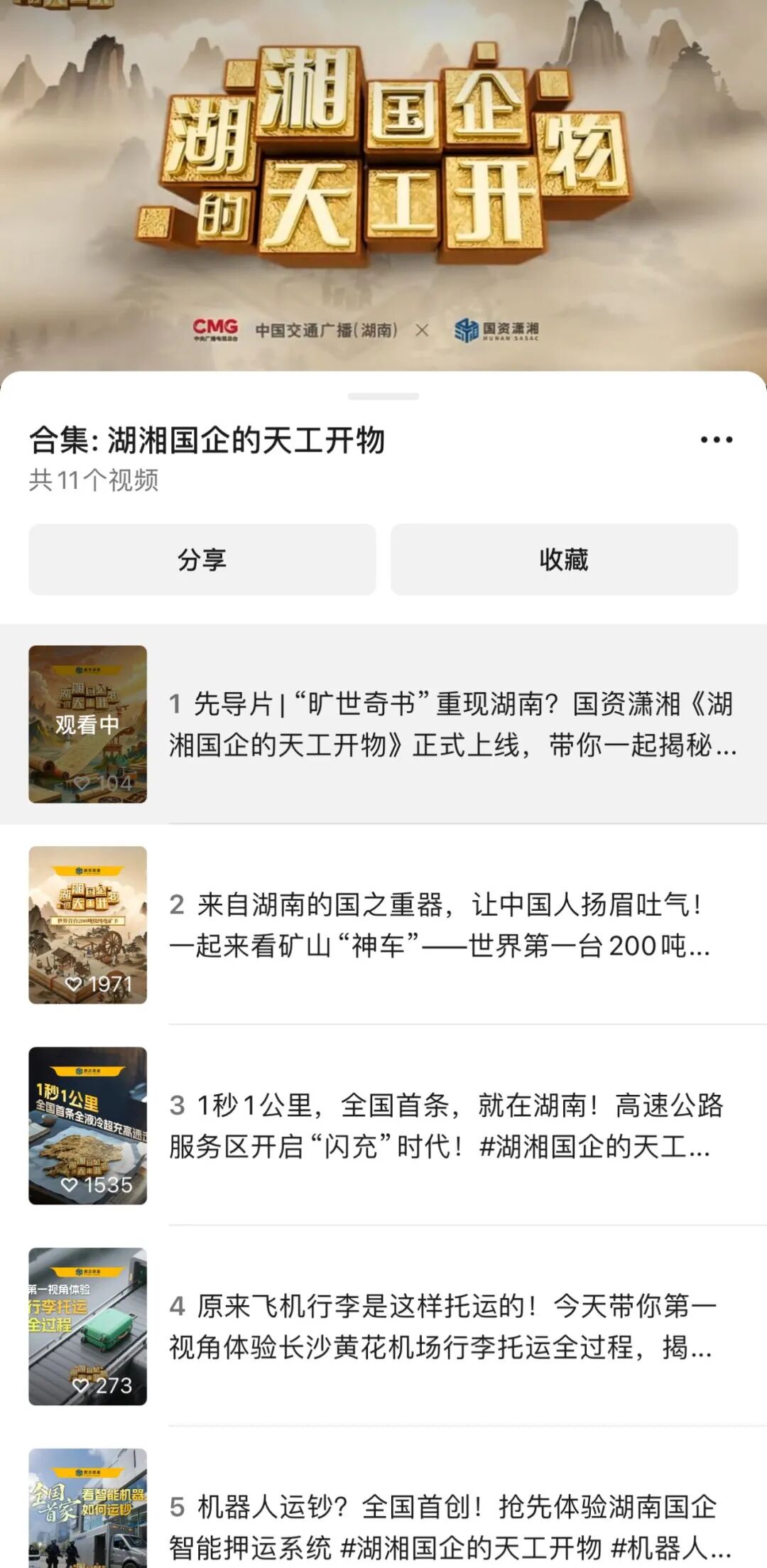 欄目每期以典籍十八大篇章中的“物”為引線,巧妙鏈接湖湘國企制造的大國重器、智能機(jī)器人、航空航天裝備等“硬核”科技成果,采用新媒體表達(dá)方式,打破國企在大眾認(rèn)知中“嚴(yán)肅、刻板、距離感”的刻板標(biāo)簽,講述現(xiàn)代國企的“天工開物”故事,展現(xiàn)湖湘國企踐行科技強(qiáng)國、產(chǎn)業(yè)報(bào)國的責(zé)任擔(dān)當(dāng)與薪火相傳的工匠精神,以有溫度有深度的創(chuàng)意作品滿足人民群眾新型文化需求,助力國企品牌破圈傳播。